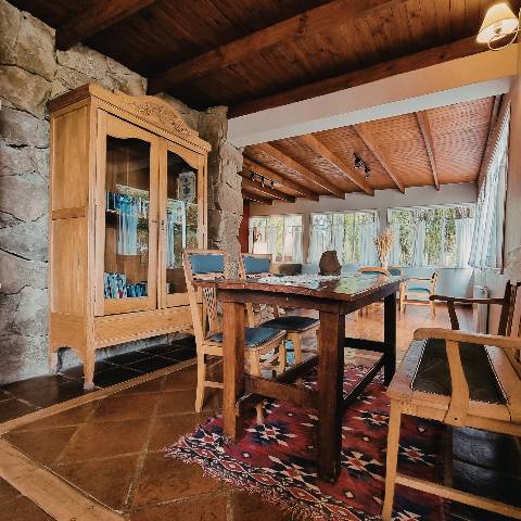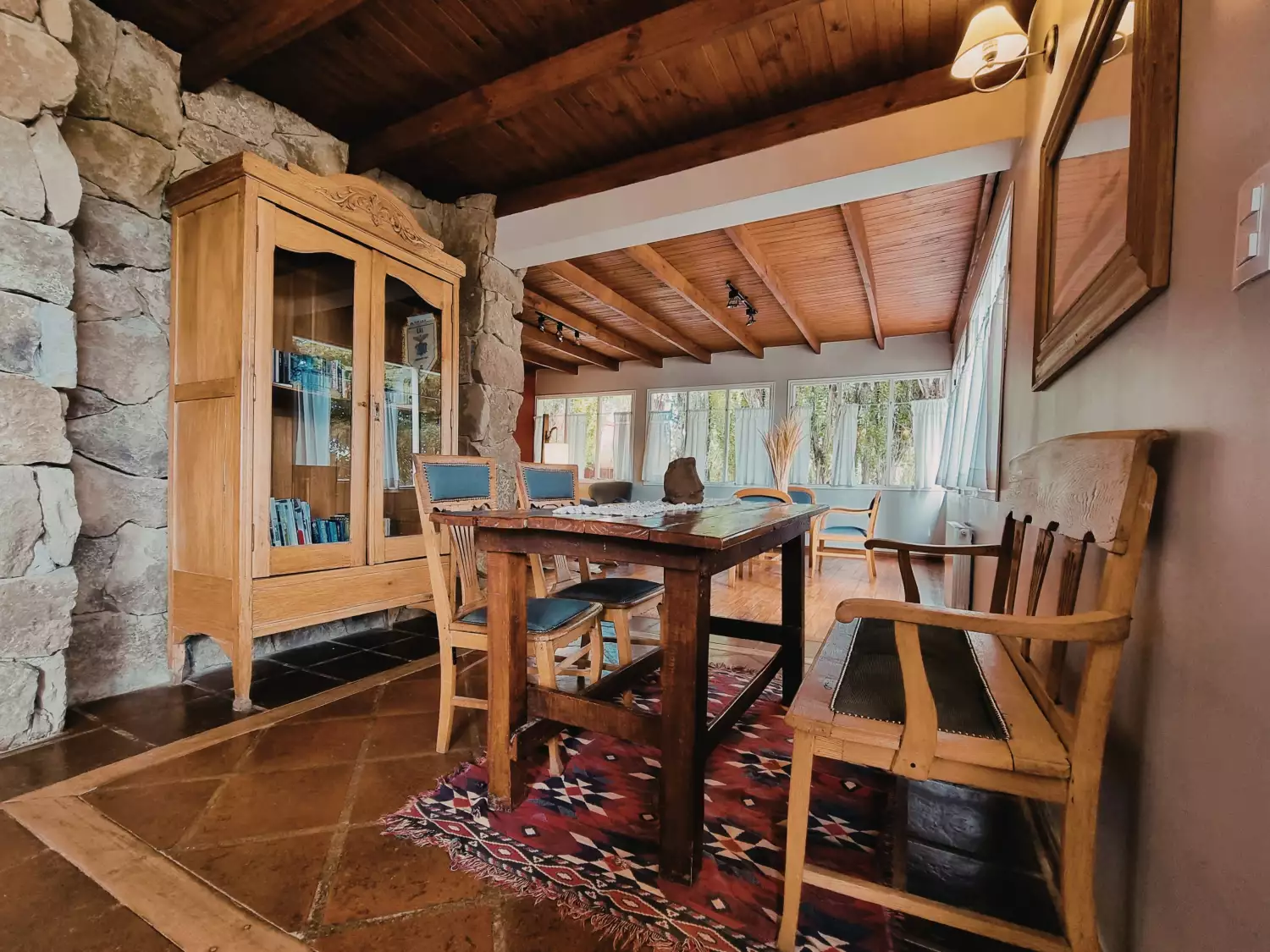 Pisos de roble, techos de madera, muebles y antiguos objetos de estancias junto a una nutrida biblioteca, recrean una tranquila atmósfera para descansar o revivir imborrables momentos después de un día de excursión.
